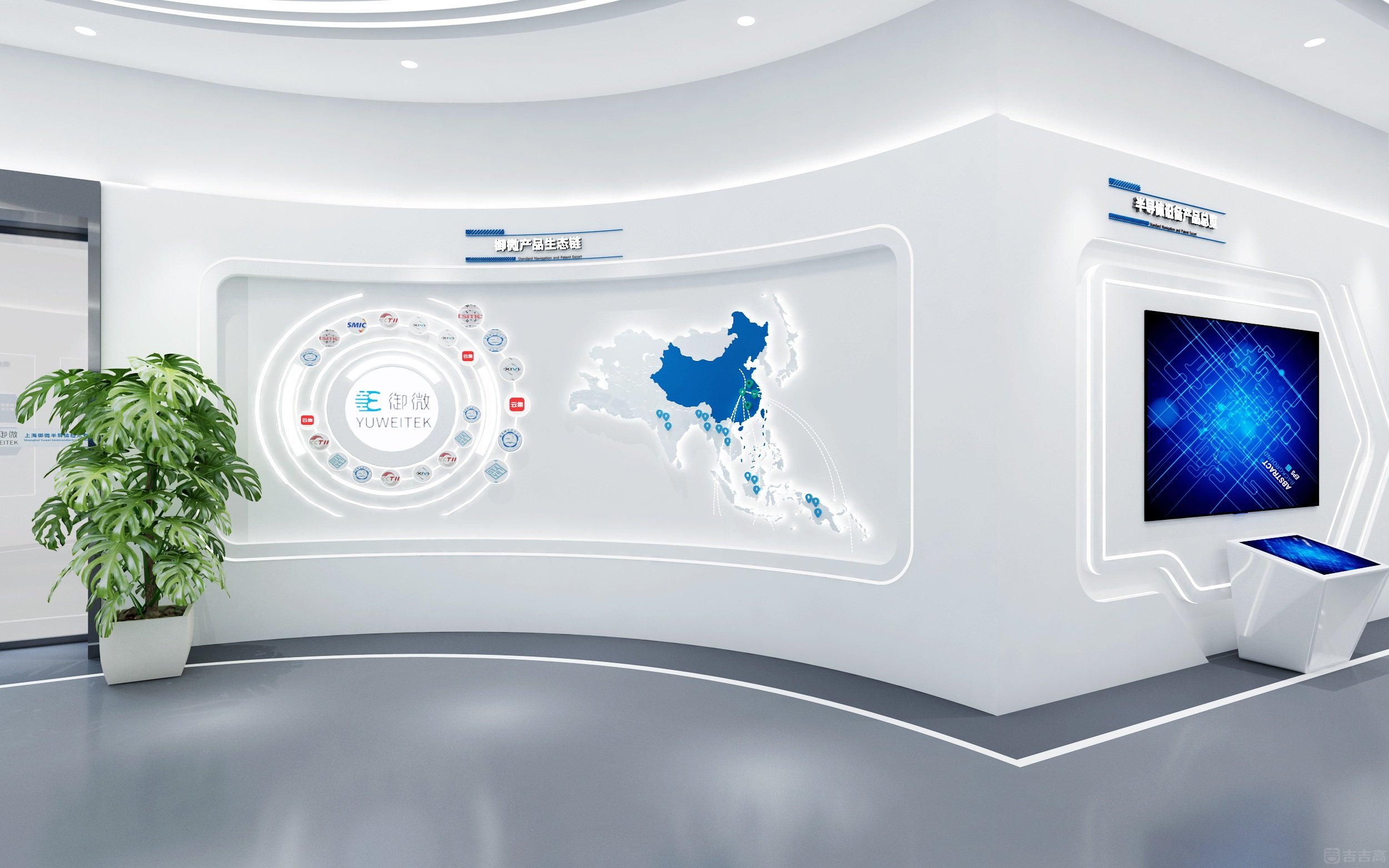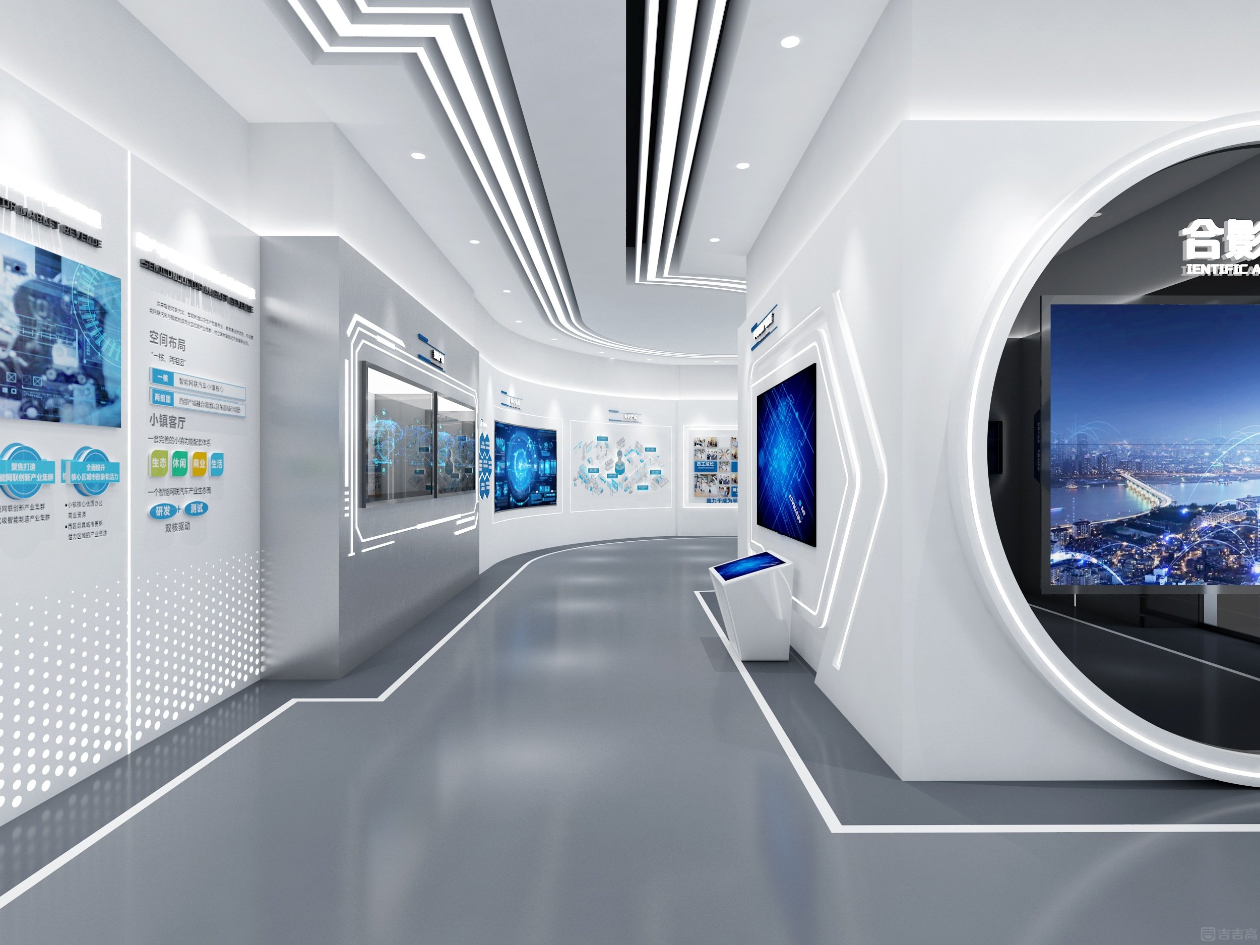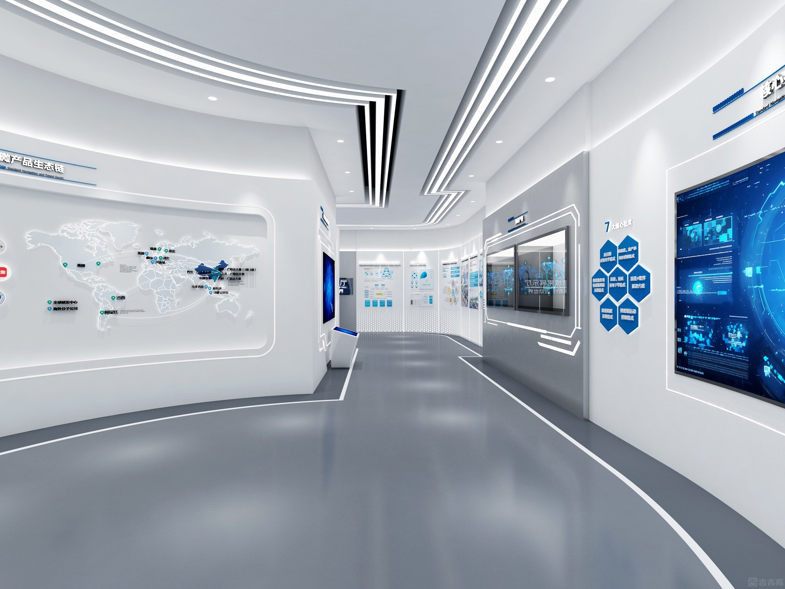 企業(yè)展廳集企業(yè)展示、技術(shù)交流功能于一體,以 “科技、實用、安全” 為設(shè)計原則,整體營造出科技未來感??臻g以冷色調(diào)為主,科技藍(lán)點綴,突出精密專業(yè)的科技?xì)赓|(zhì)。通過 3D 動畫生動演示產(chǎn)品性能、結(jié)構(gòu)及工作原理,并借助參與式、互動式展陳方式,將客戶需求、企業(yè)實力與空間布局相融合,充分彰顯企業(yè)的高端技術(shù)水平和核心競爭力。