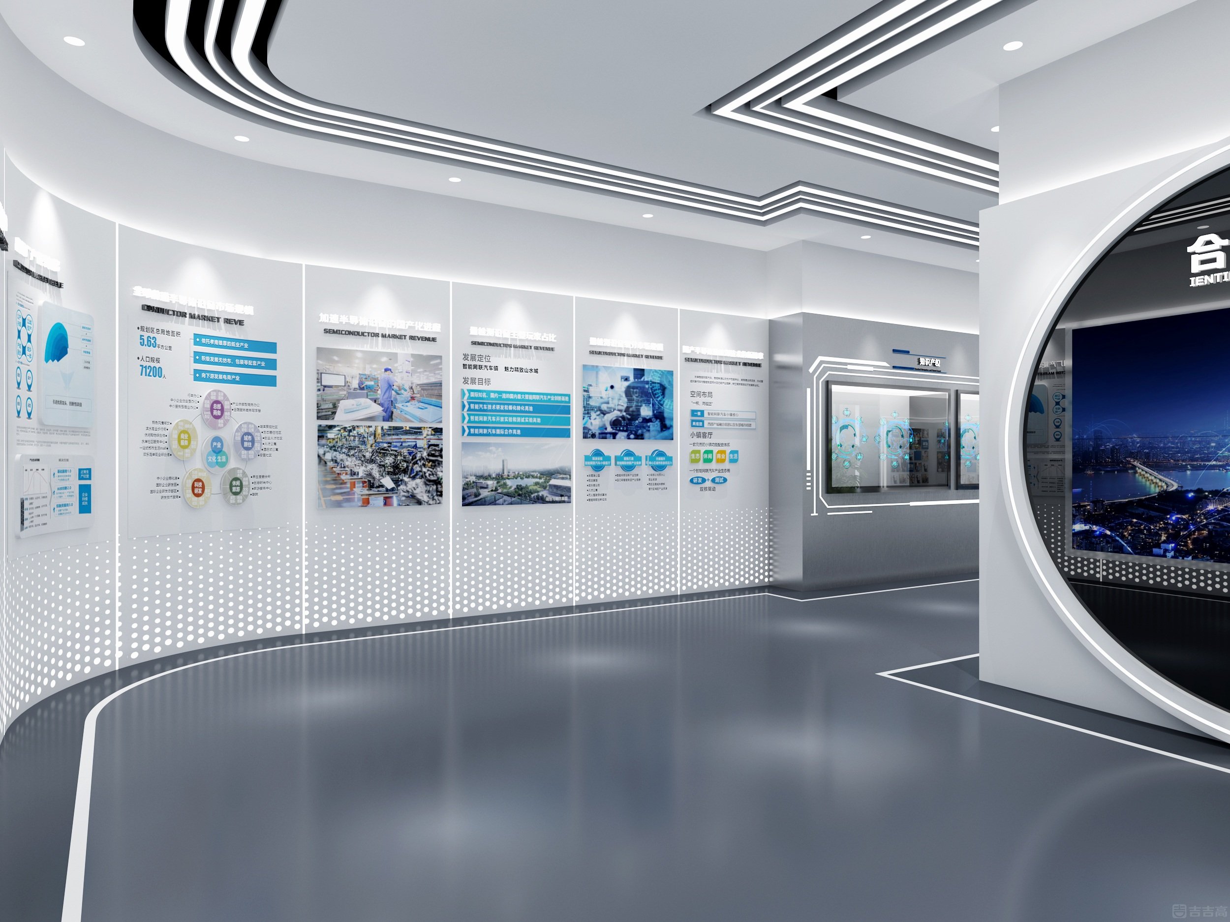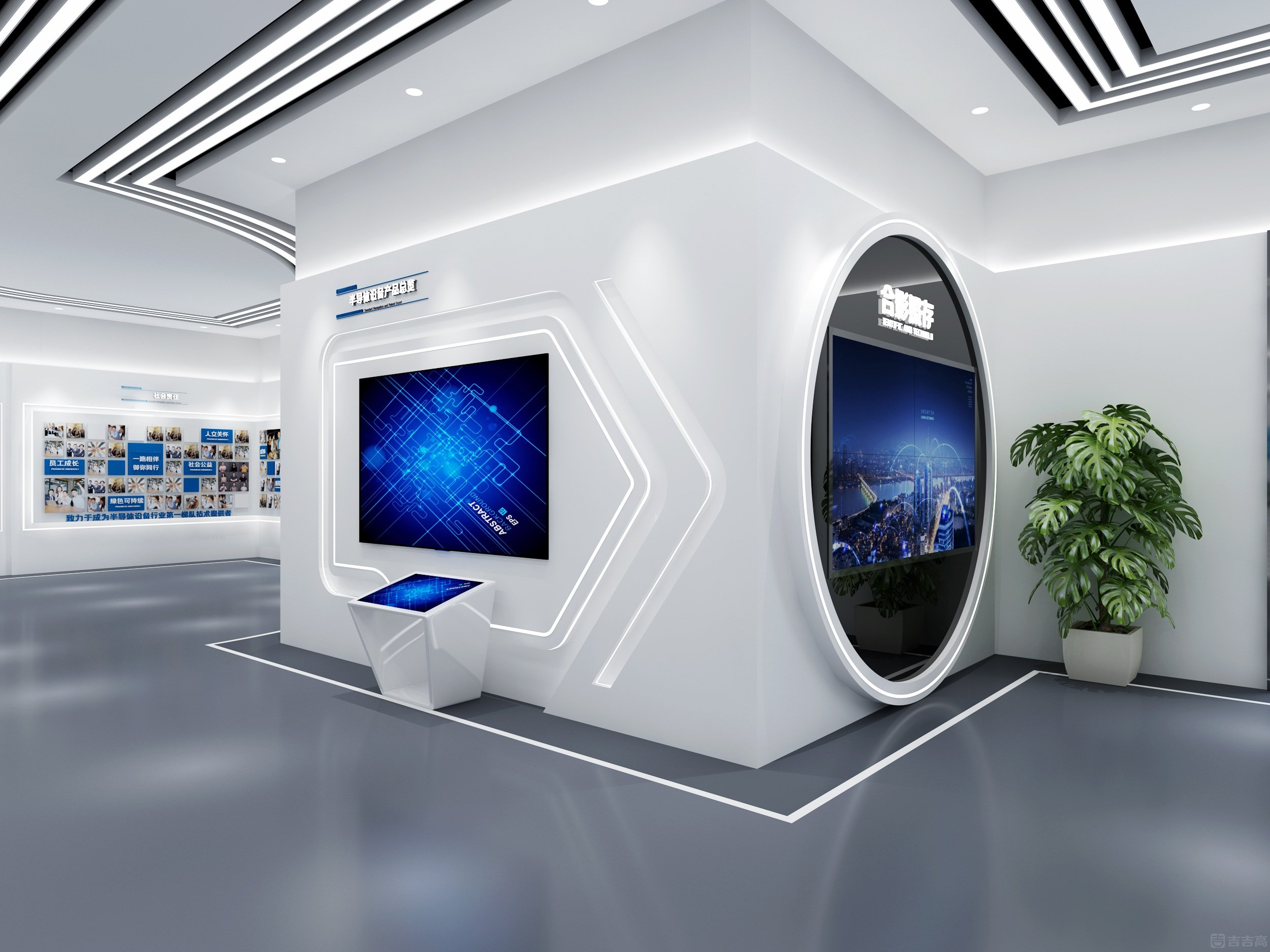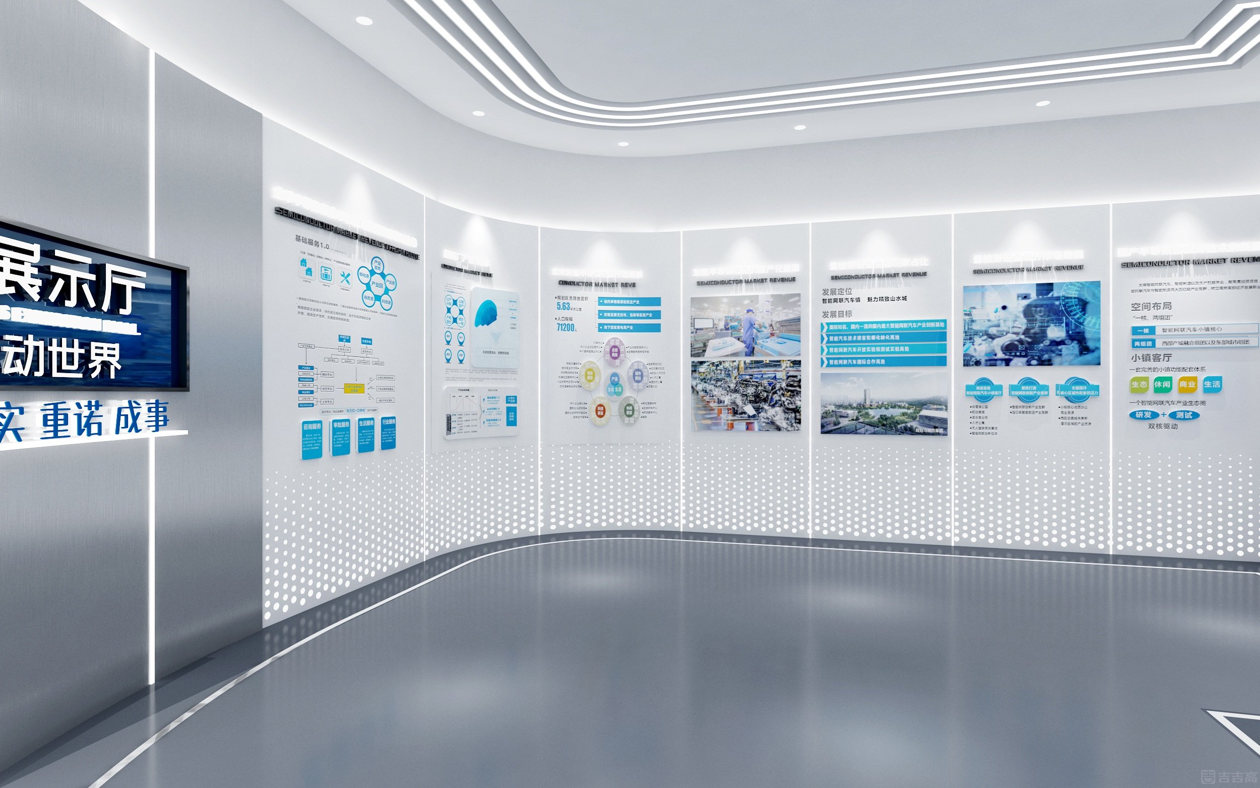企業(yè)展廳集企業(yè)展示、技術(shù)交流功能于一體,以 “科技、實用、安全” 為設(shè)計原則,整體營造出科技未來感??臻g以冷色調(diào)為主,科技藍(lán)點綴,突出精密專業(yè)的科技?xì)赓|(zhì)。通過 3D 動畫生動演示產(chǎn)品性能、結(jié)構(gòu)及工作原理,并借助參與式、互動式展陳方式,將客戶需求、企業(yè)實力與空間布局相融合,充分彰顯企業(yè)的高端技術(shù)水平和核心競爭力。