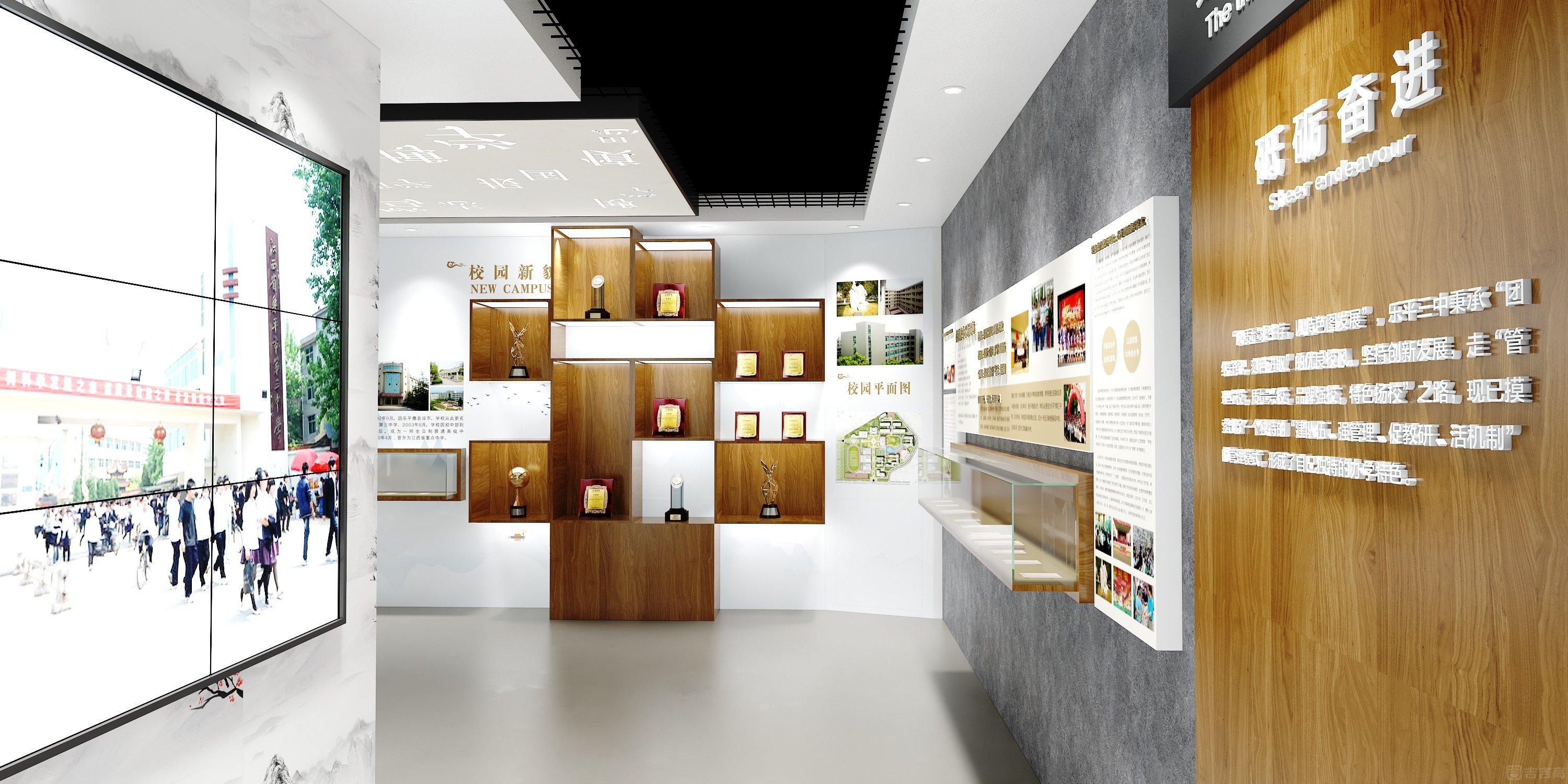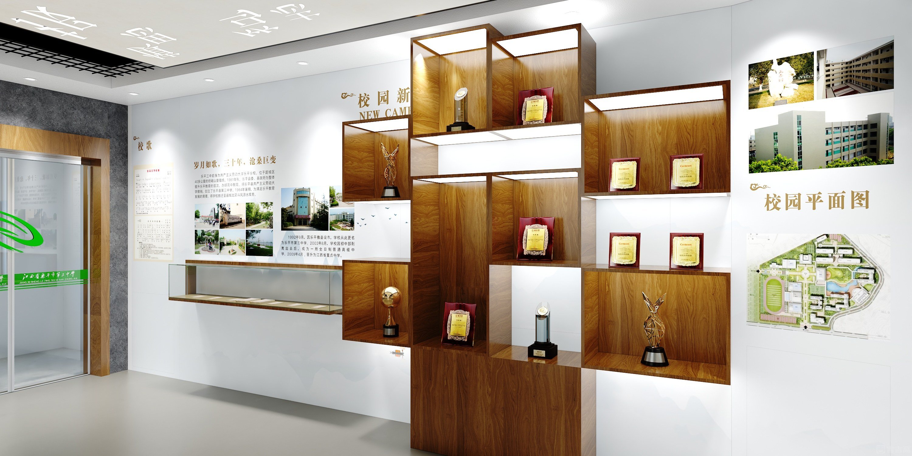踏入樂平市第三中學(xué)校史館,時(shí)光的醇厚氣息撲面而來。館內(nèi)以溫潤(rùn)的原木為主要基調(diào),巧妙地中和了歷史的厚重感,營(yíng)造出一派清新雅致的氛圍。柔和的燈光灑在古樸的展柜與斑駁的展板上,仿佛為塵封的歲月鍍上了一層暖光。木質(zhì)展墻鐫刻著年輪般的印記,處處流露著寧靜而悠遠(yuǎn)的韻味。這里沒有浮華的裝飾,唯有木韻書香,引領(lǐng)來訪者穿梭于一條貫通往昔與現(xiàn)在的文化長(zhǎng)廊,靜靜聆聽這座學(xué)府一路走來的風(fēng)雨與榮光。