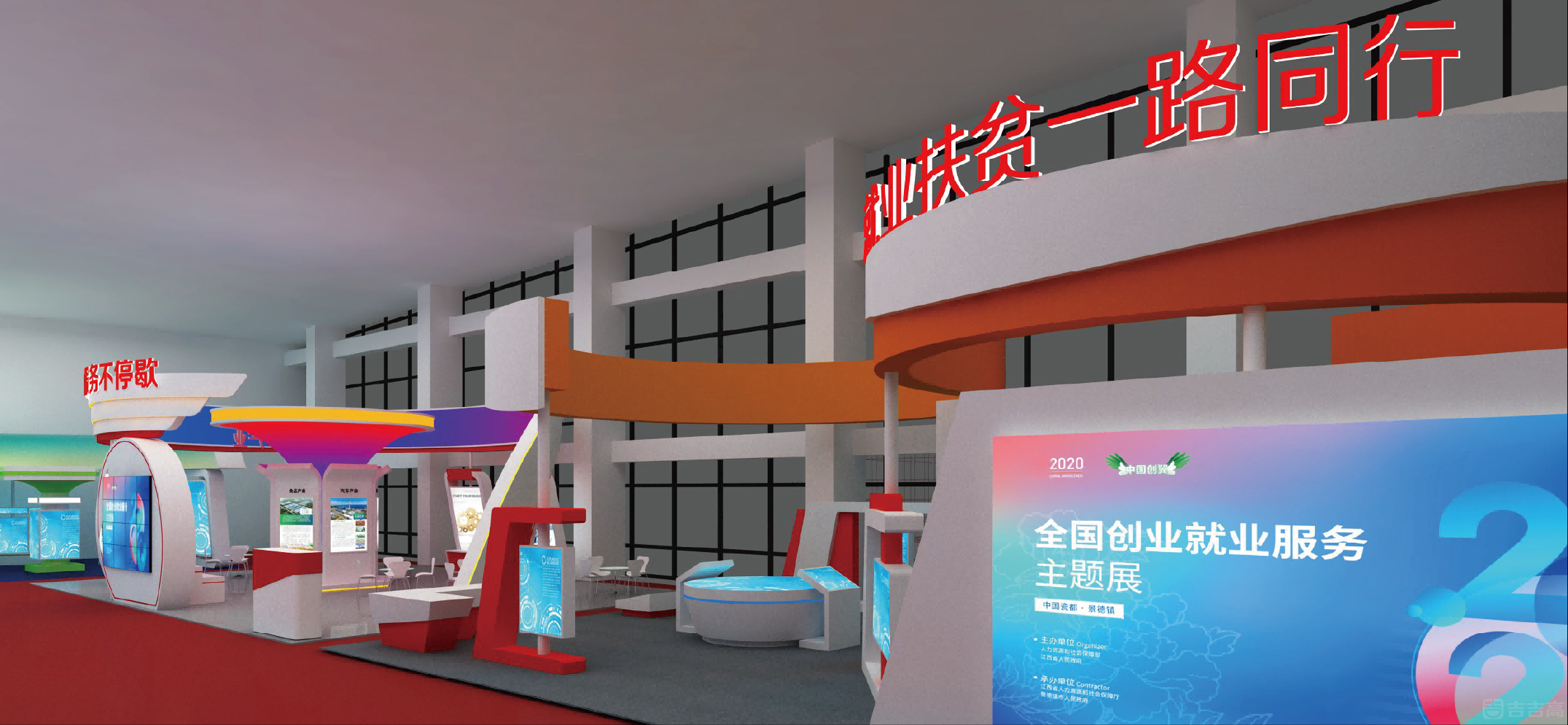 全國(guó)就業(yè)創(chuàng)業(yè)主題服務(wù)展在景德鎮(zhèn)陶溪川開展,服務(wù)展以“就業(yè)創(chuàng)業(yè)”為主題,以“促進(jìn)轉(zhuǎn)變發(fā)展方式、推廣應(yīng)用科技成果”為宗旨,將展會(huì)打造成為“有檔次、有影響、有效果”的服務(wù)展;整體會(huì)場(chǎng)涵蓋互動(dòng)標(biāo)攤展區(qū)、直播互動(dòng)區(qū)以及七大主題展區(qū),各主題展形象、空間規(guī)劃、情景體驗(yàn)各不一樣,科技中融入創(chuàng)意設(shè)計(jì);使整個(gè)主題服務(wù)展區(qū)繽紛生動(dòng);原全國(guó)人大副委員長(zhǎng)張春賢、原江西省省長(zhǎng)易煉紅、原人社部部長(zhǎng)張紀(jì)南蒞臨現(xiàn)場(chǎng)參觀指導(dǎo)。